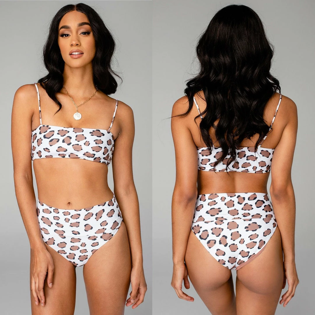 A tropical getaway must have! Our Tahiti Bikini features high waisted bottoms, bandeau top, non-adjustable straps, and double lining!
