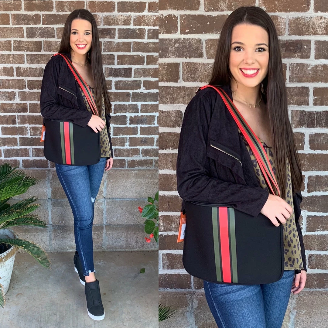 Lined interior with 1 zipper pocket and 2 drop pockets