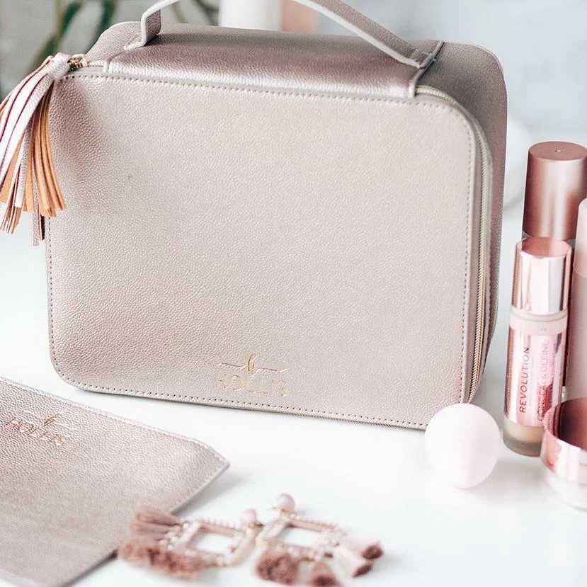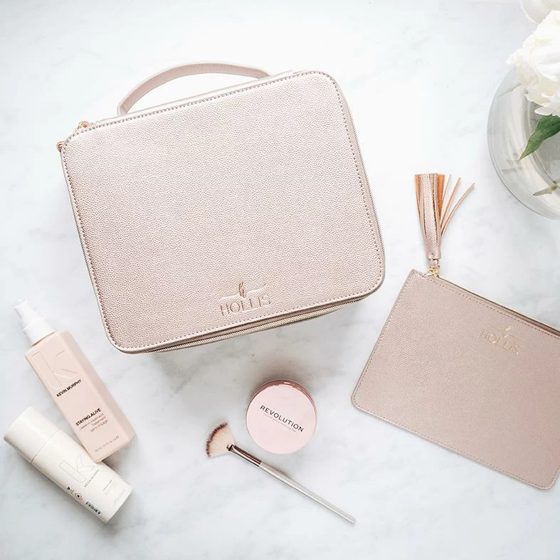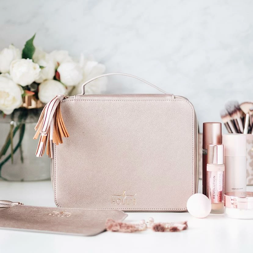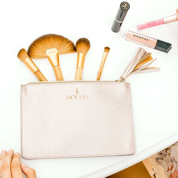 The holy grail make up bag! This one is for my make up junkies! The Jett Setter is a beautiful rose gold leather that comes lined with our unique interior that can easily be wiped out with a make up wipe and will never stain! No more throwing out your make up bag when you have a spill. This bag is perfect for travel and even comes with a pouch to hold your make up brushes and smaller items.