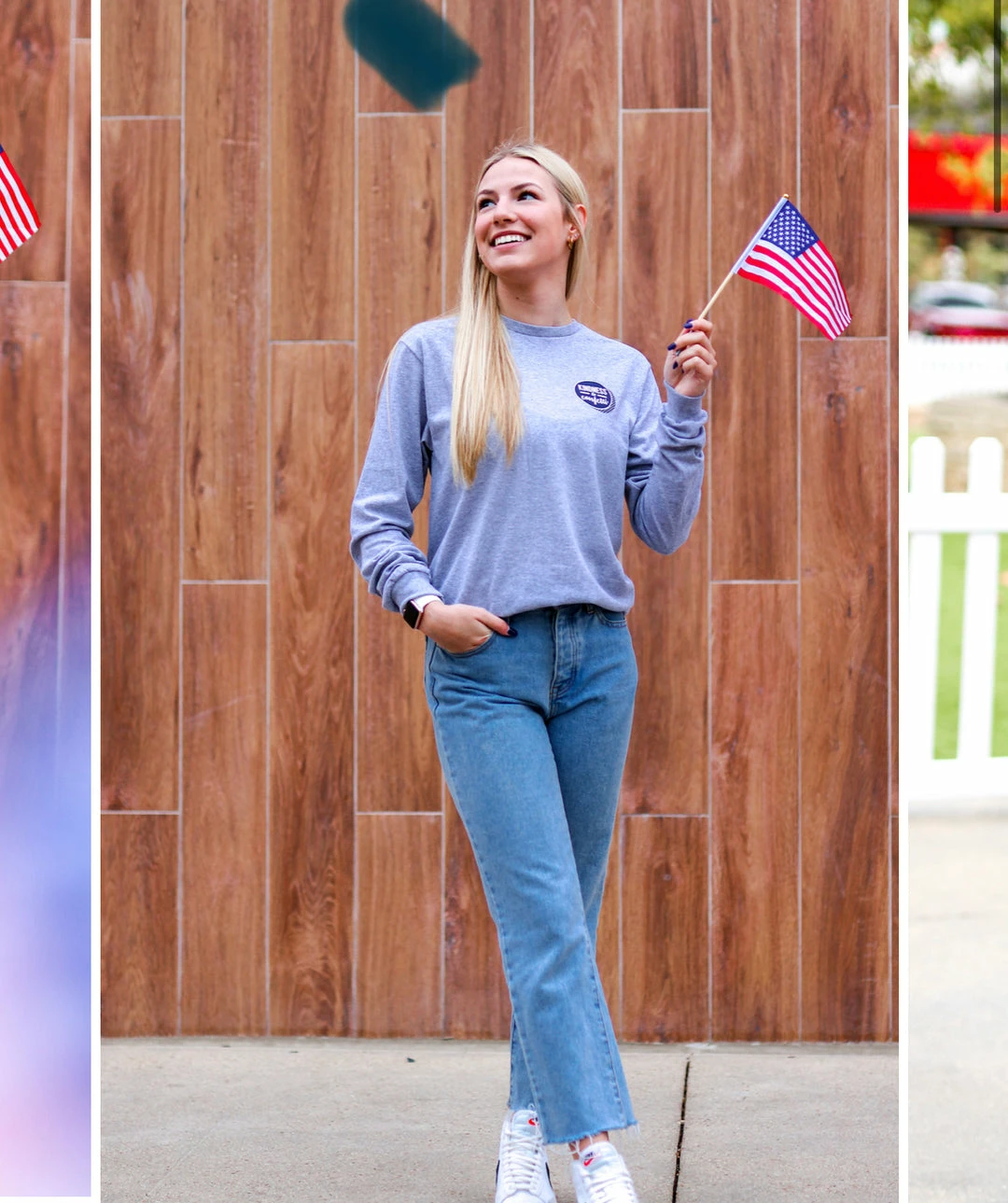 - Two-needle hemmed sleeves and bottom won’t unravel