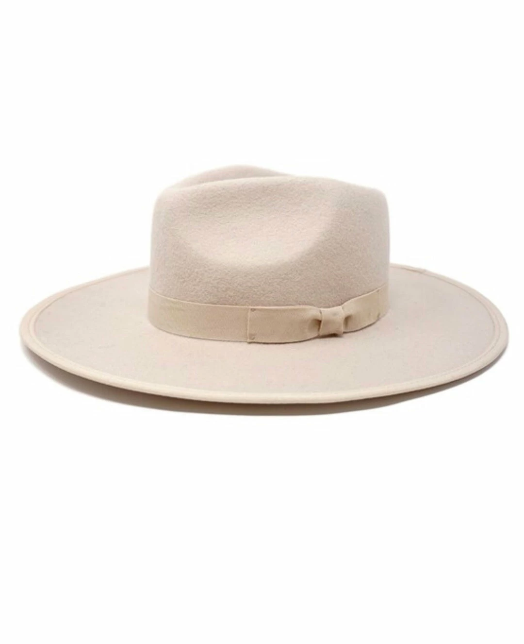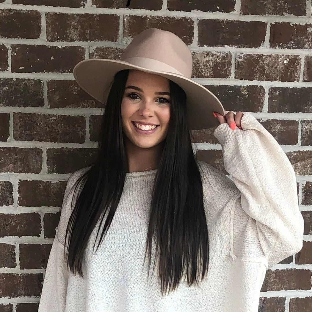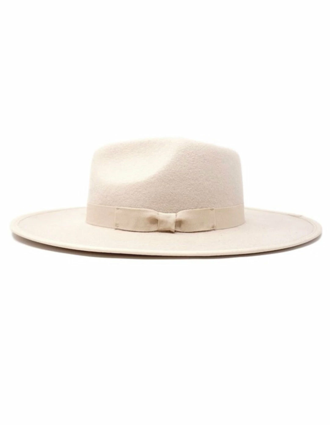 Flat brim wool fedora hat with piping detailing and adjustable inner drawstring for sizing